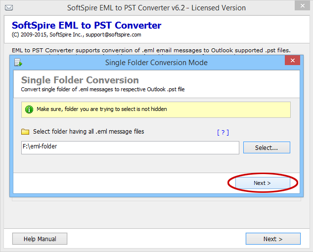 Now click on Select button, browse & select the root folder containing multiple EML folders